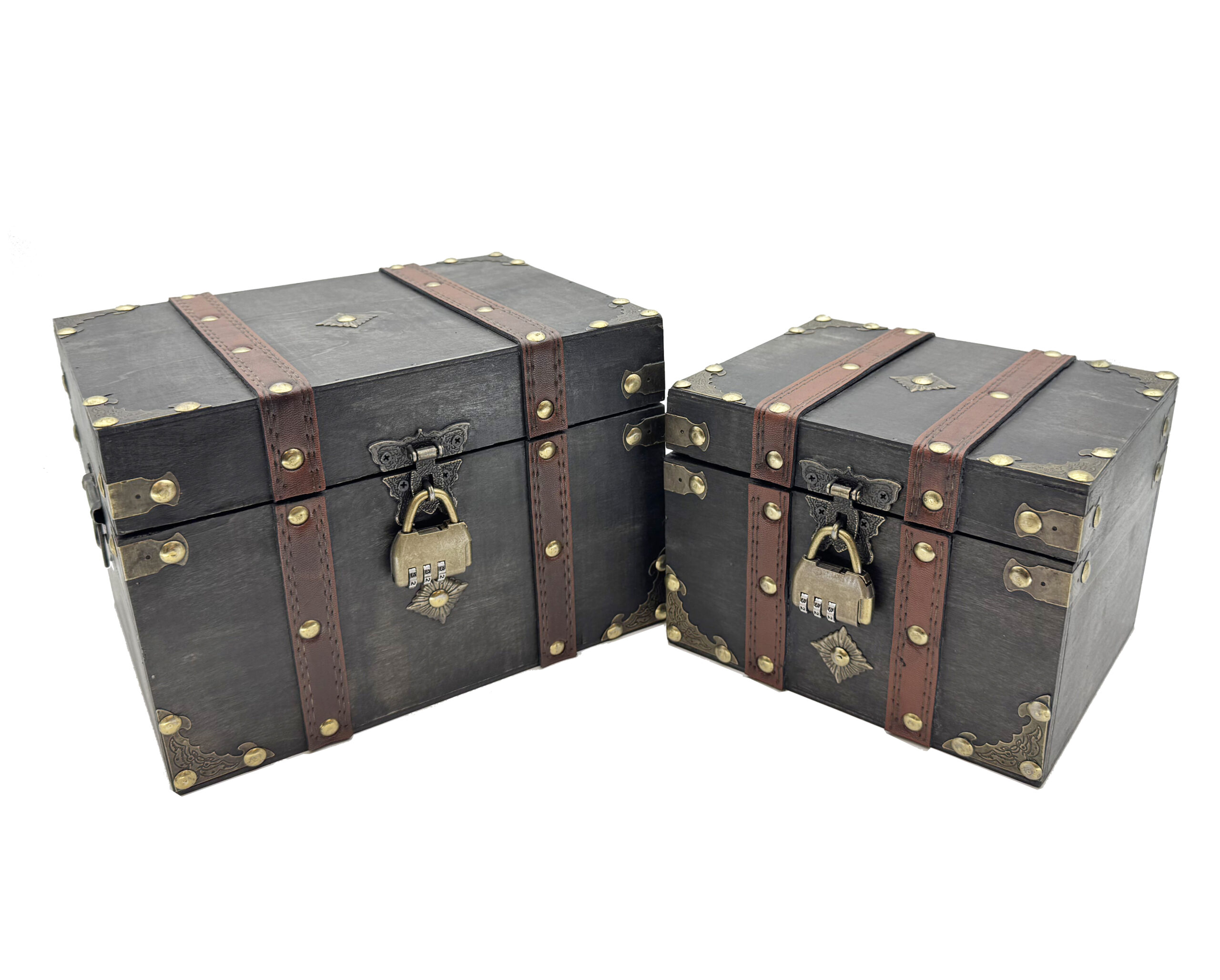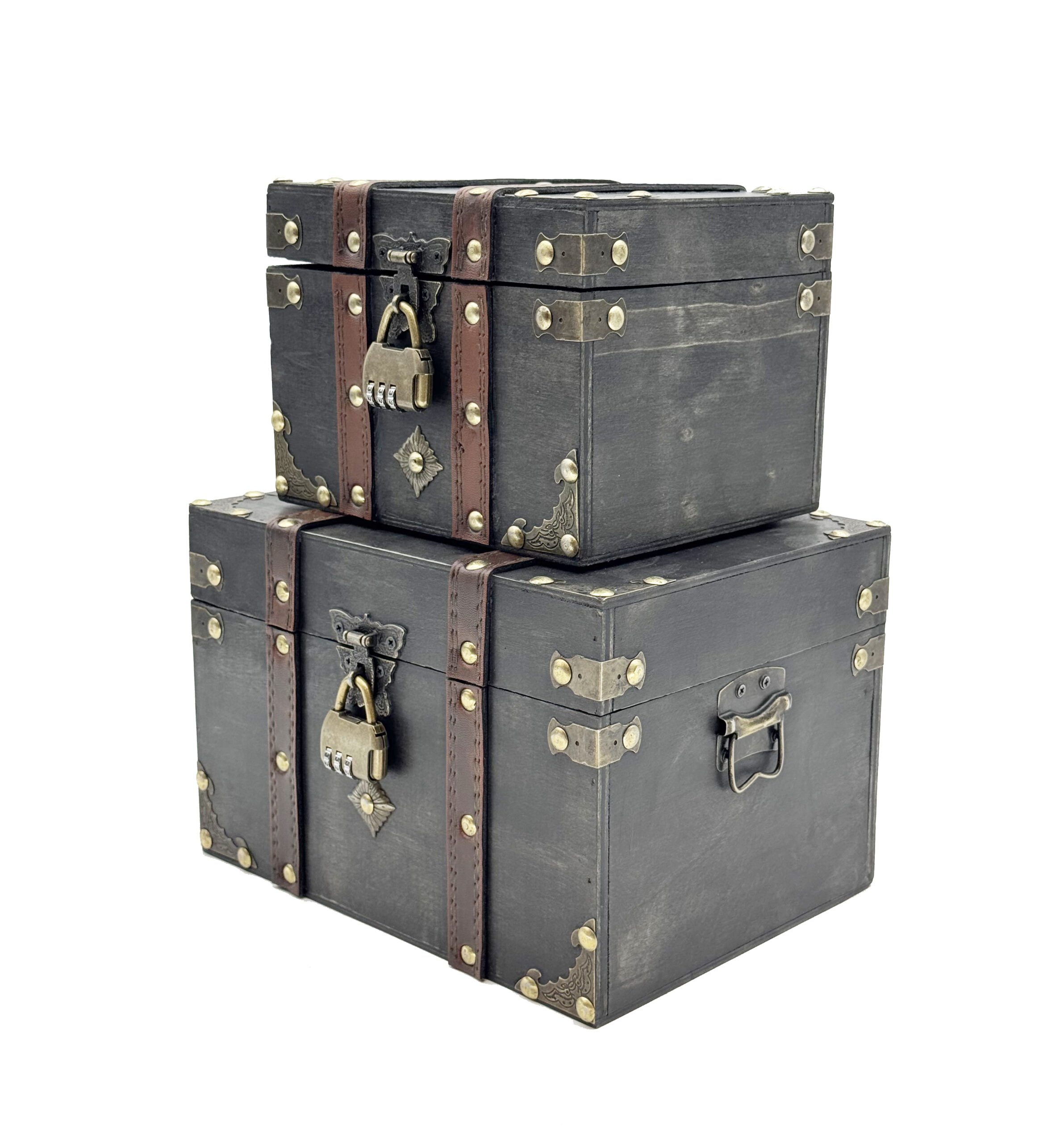 Grey Wooden Treasure Box Set with Lock