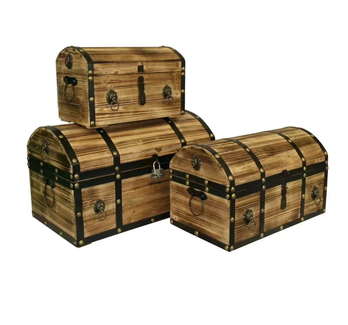 / Vintage Wooden Treasure Chest Set, Set of 3