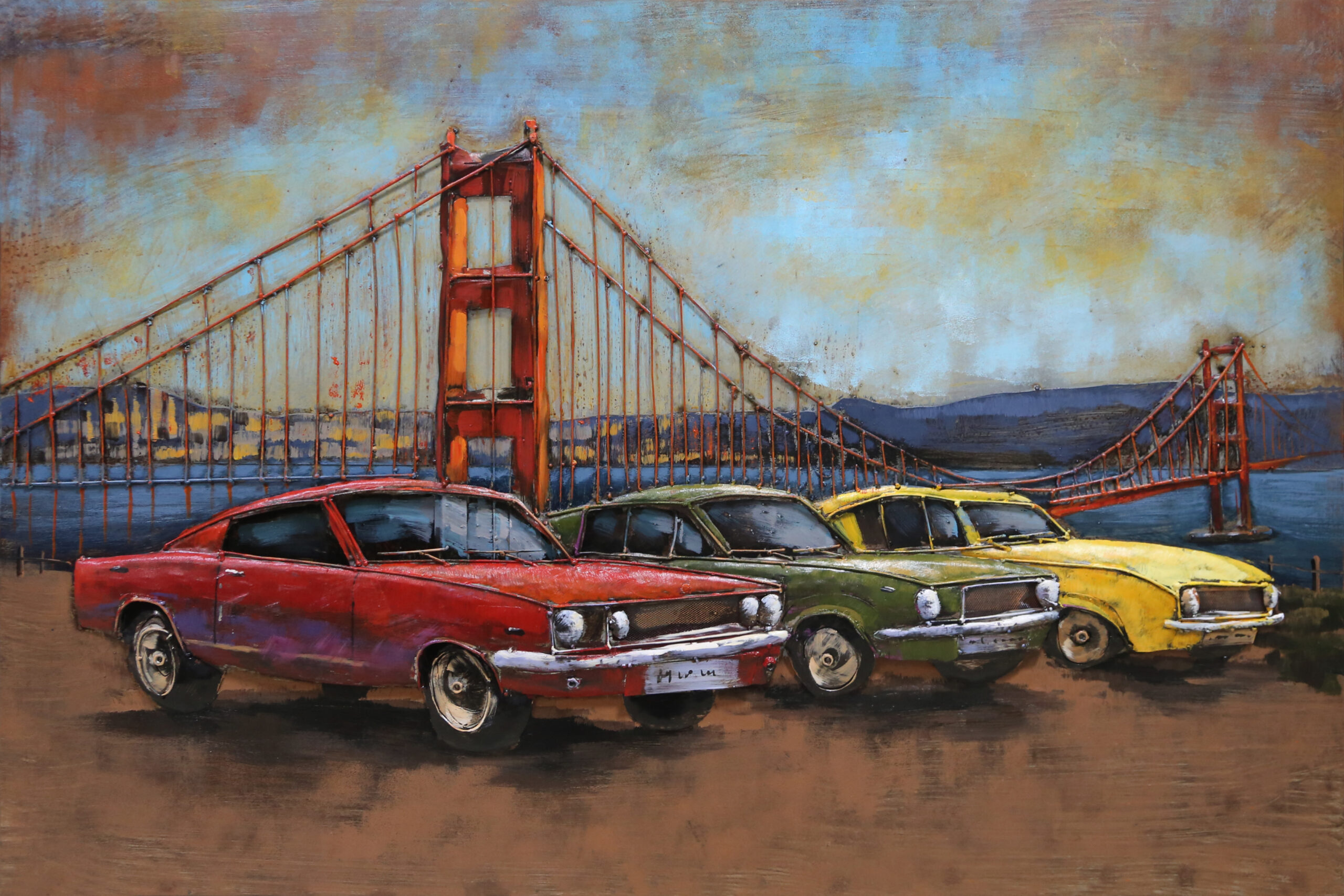 / Golden Gate Vintage Cars 3D Metal Wall Art