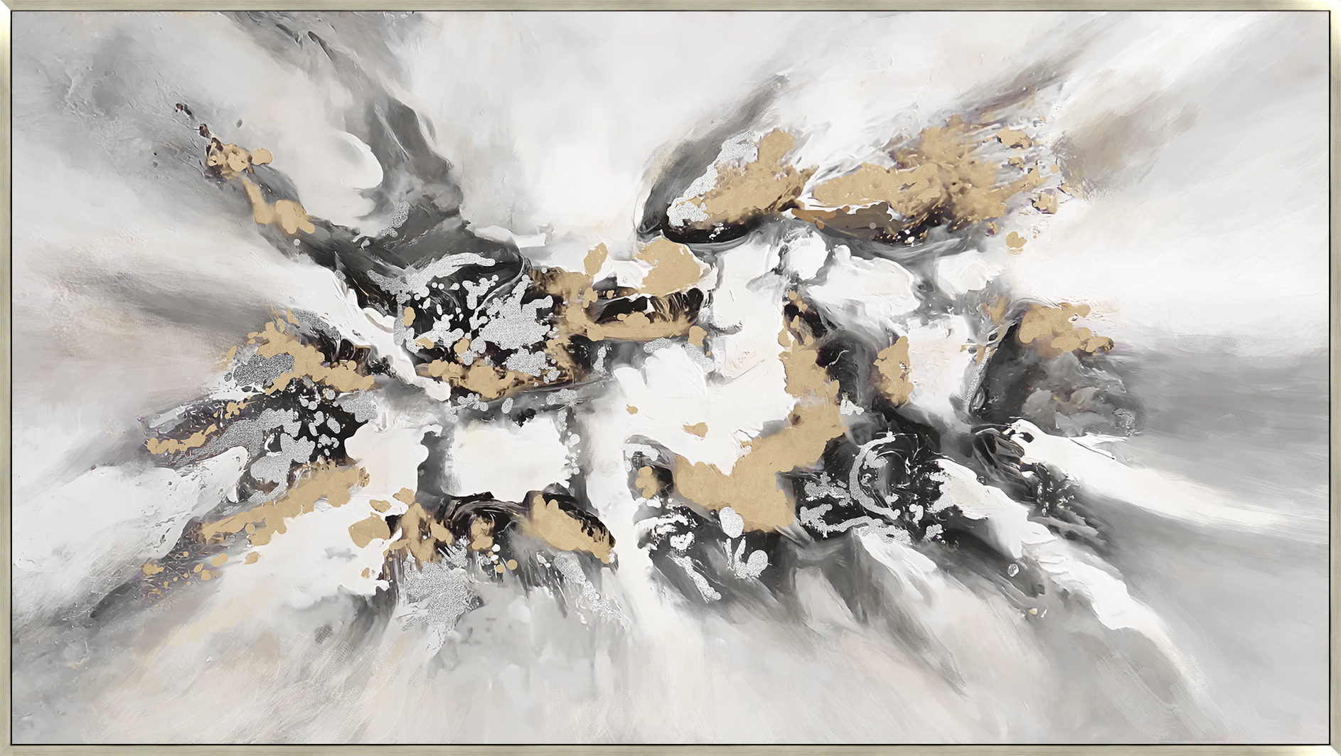 Gray & Gold Flow Abstract Hand Painting with Champagne Frame